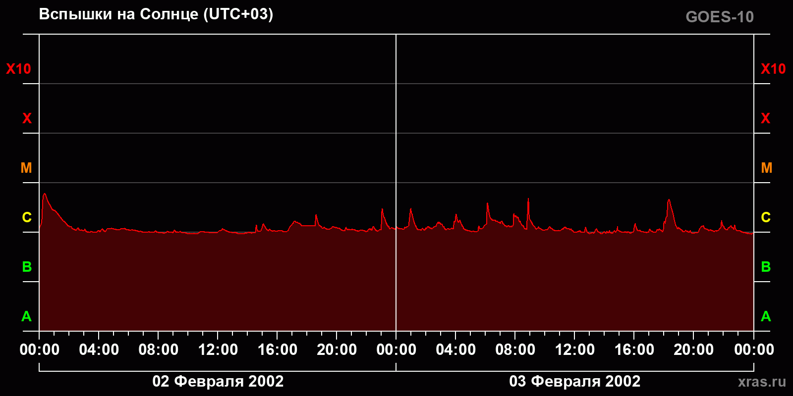График солнечной активности с 02 по 03 февраля 2002 года