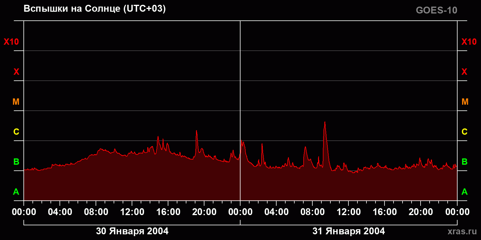 График солнечной активности с 30 по 31 января 2004 года