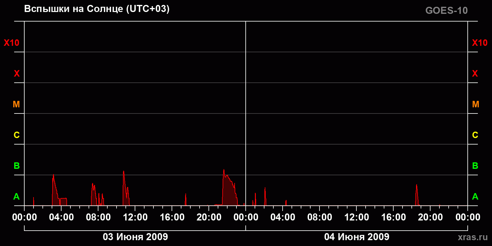 График солнечной активности с 03 по 04 июня 2009 года