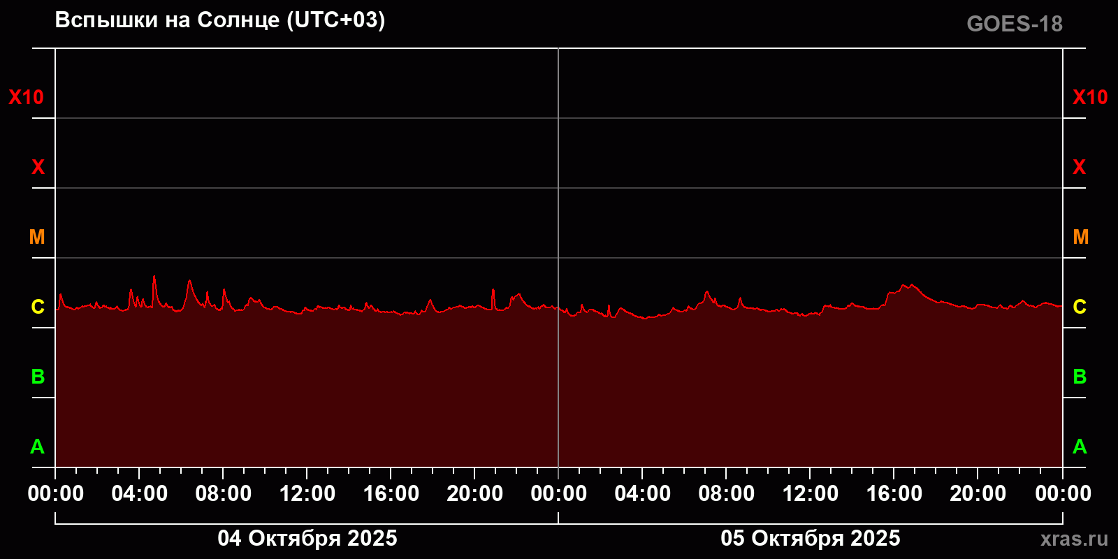 График солнечной активности с 04 по 05 октября 2025 года
