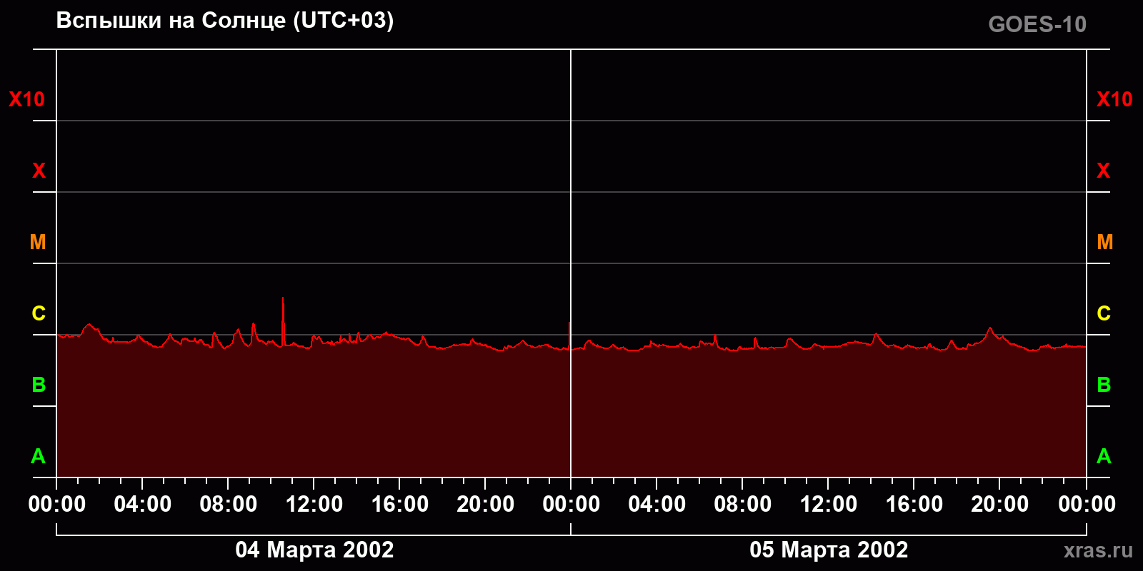 График солнечной активности с 04 по 05 марта 2002 года
