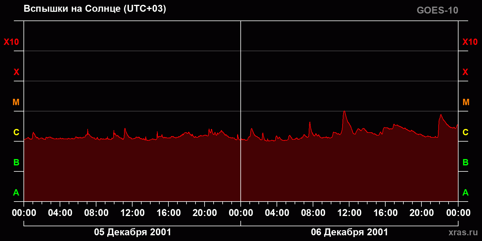 График солнечной активности с 05 по 06 декабря 2001 года