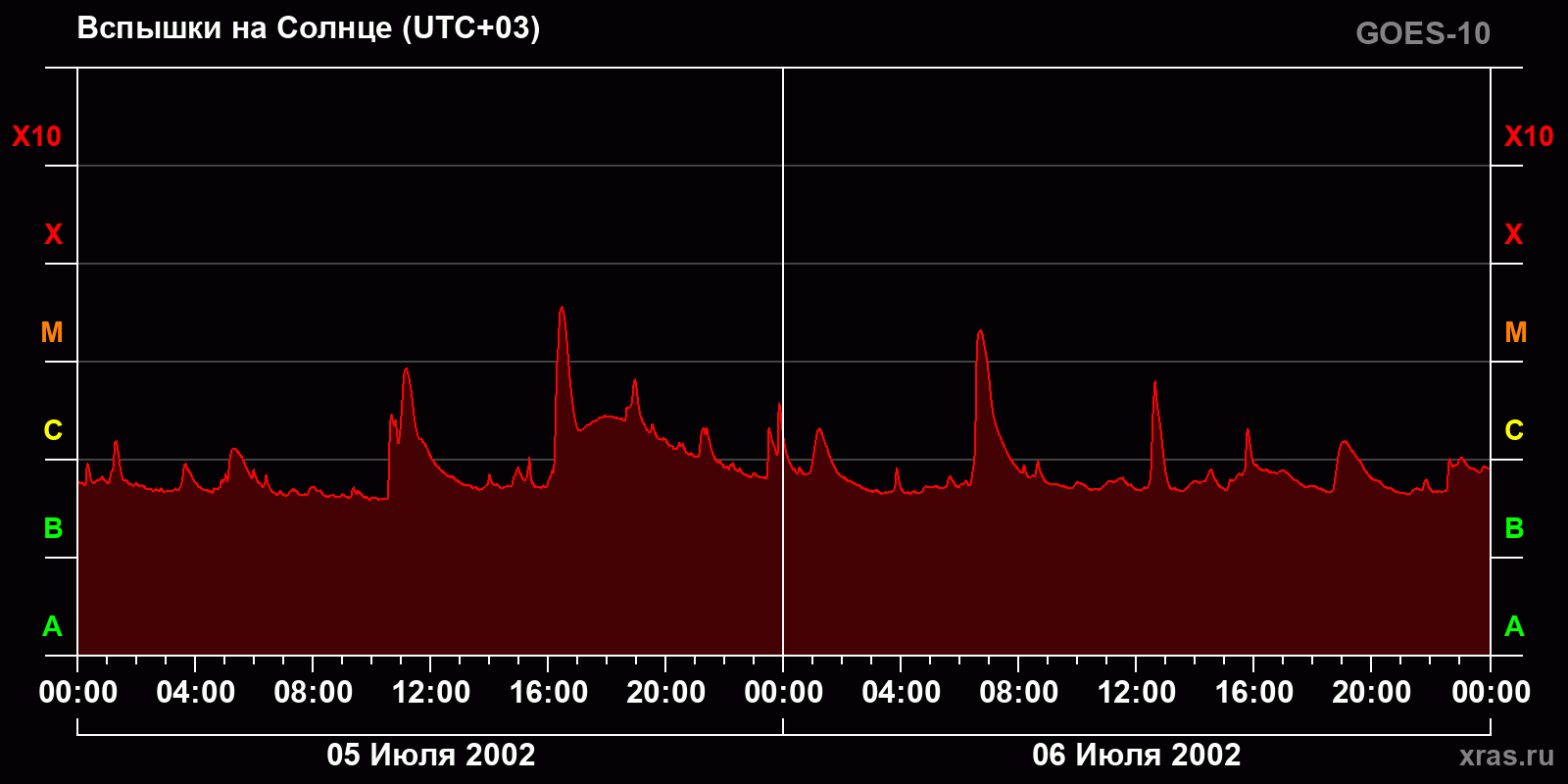 График солнечной активности с 05 по 06 июля 2002 года