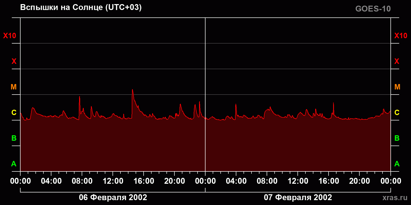График солнечной активности с 06 по 07 февраля 2002 года